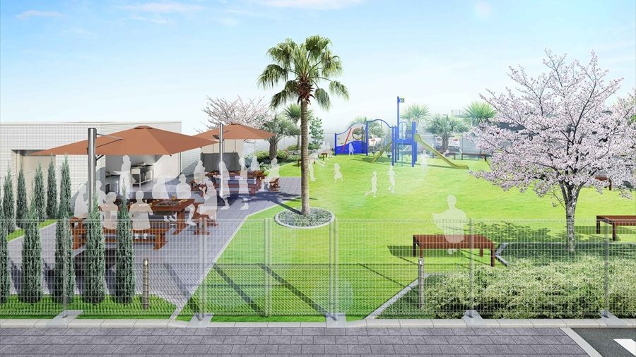公園内には桜があるので、お友達を招待してお花見バーベキューをするもよし、マンションの住民同士で交流を深めるもよし、家族水入らずで気軽に利用もいいですね。