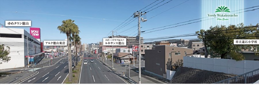 ヴェルディ若草町パームガーデンは、最寄りの徳山駅から自転車で約10分の遠石エリアに立地します。