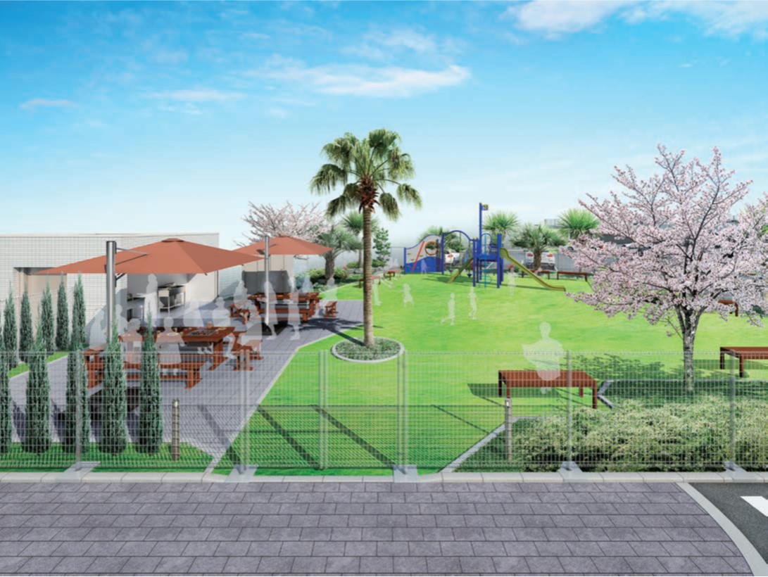 ヴェルディの目玉となる共用施設として人工芝を全面に敷いた敷地内公園があります!