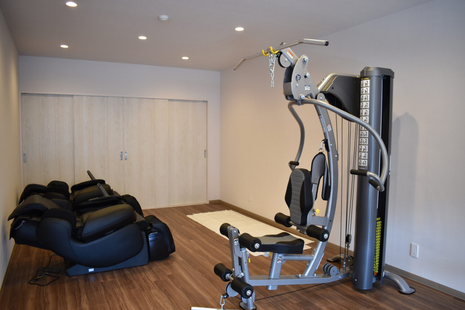 ルームランナーやベンチプレスにマッサージチェアーまであり、仕事から帰ってから体力作りもできるので便利ですね。