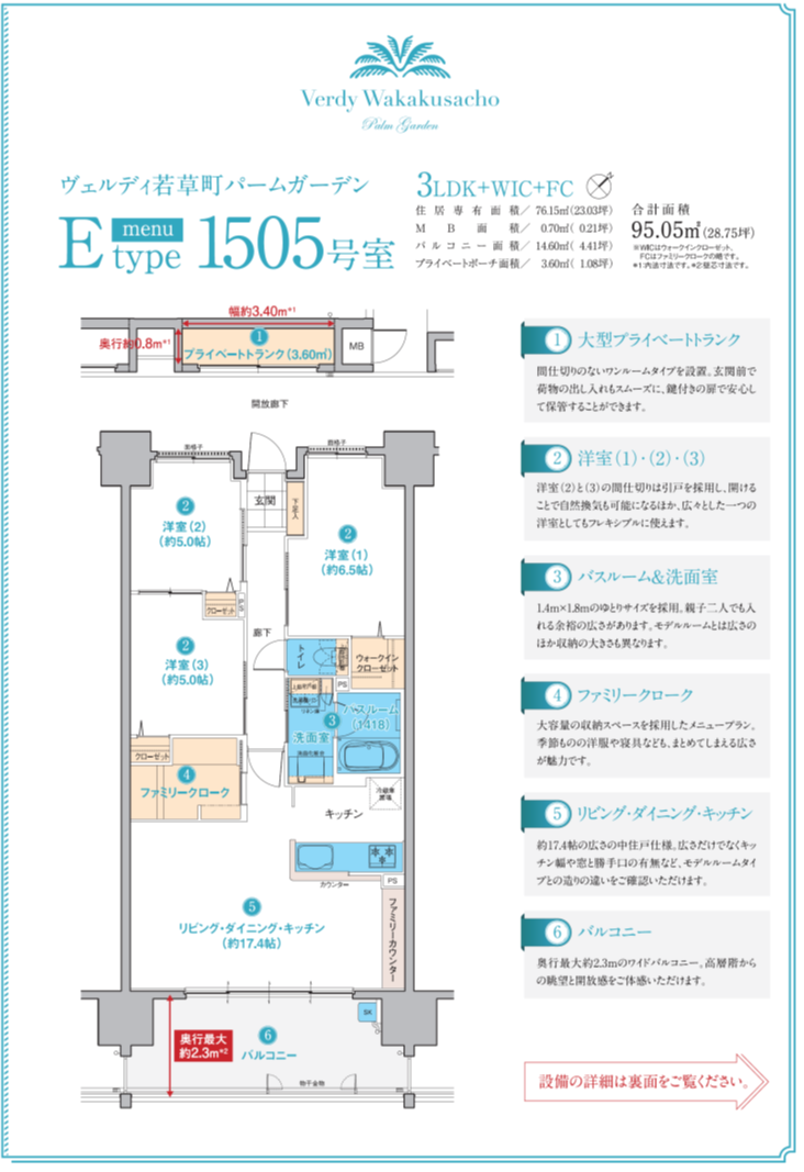 見学したのはのEタイプ1505号室の間取りが3LDKのお部屋です。