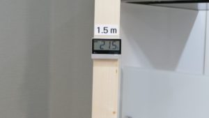 部屋②温度計②[voice icon=”https://www.tokuyamap.com/wp-content/uploads/2019/11/goudouuchiyama.jpg” name=”弊社内山” type=” l big”]床付近が4度も温度が違うんですね!顔に直接温かい空気が当たらないから過ごしやすいですね![/voice]