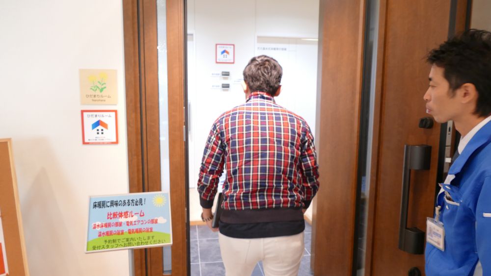 ここはなんと電気で温めたお部屋とガスで温めた部屋を比較できる展示スペース!一部屋目は電気=空調で温めたお部屋です。
