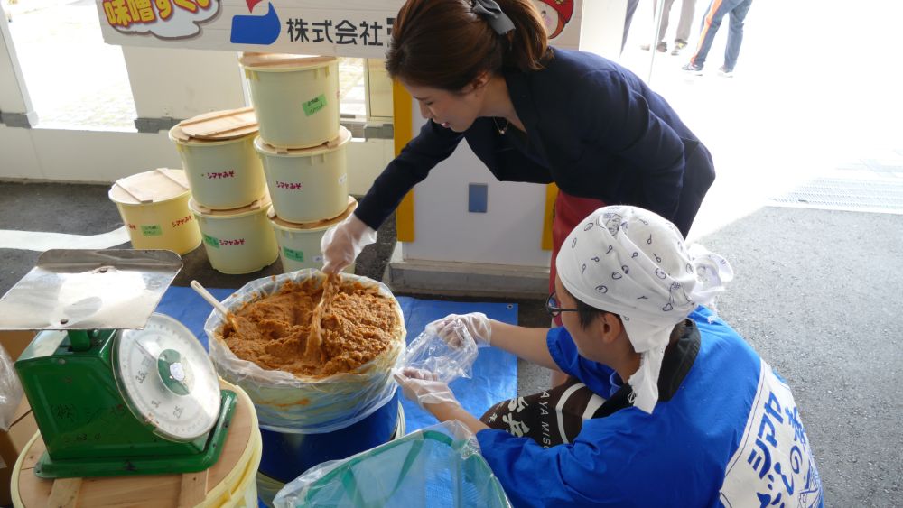 内山が味噌すくいどりに挑戦!大きなしゃもじでたっぷりとすくいどり!