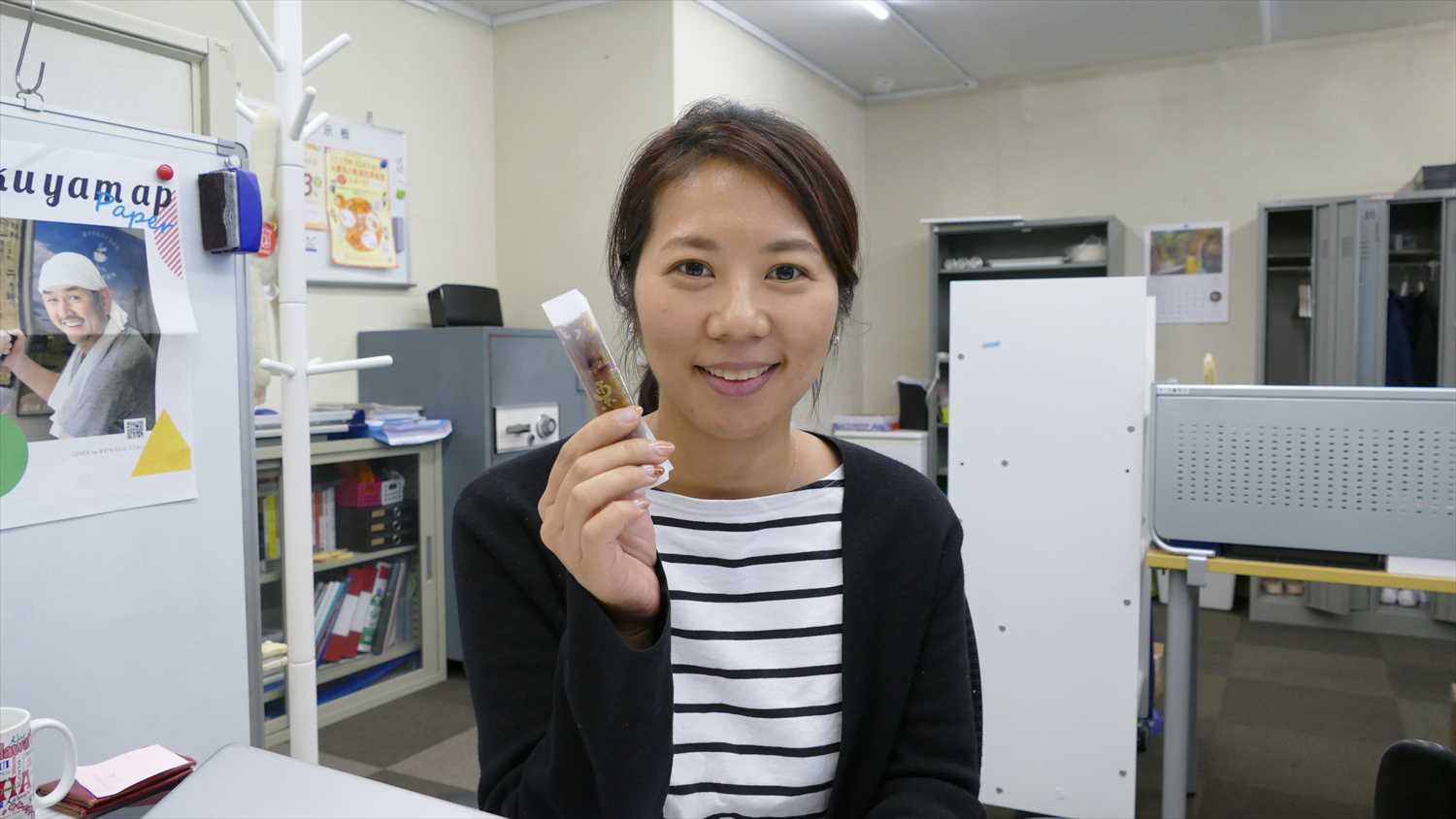 [voice icon=”https://www.tokuyamap.com/wp-content/uploads/2019/10/tosiro-6-e1571898207654.jpg” name=”やない編集長” type=”l”]結構、がっつり栗が入っている!生地は甘さ控えめで、栗と小豆はやっぱり相性抜群だね。ぷるんとしていて、おいしい![/voice]