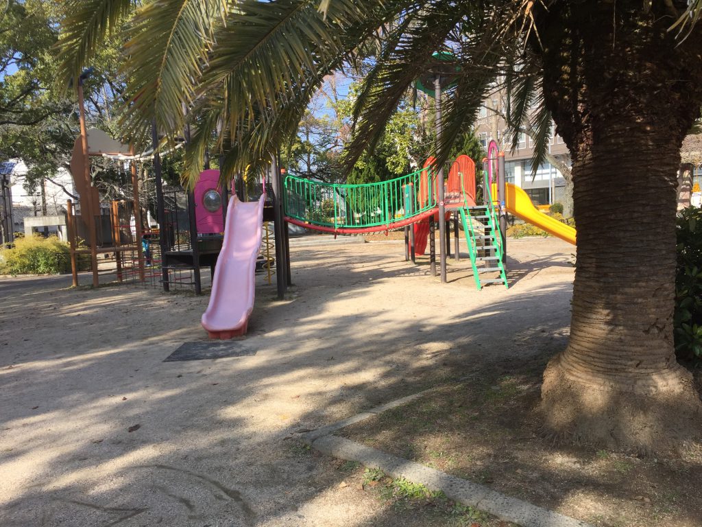 ボール遊びができる広い広場と、4年前にリニューアルした新しい遊具、さらには大人向けの健康遊具までそろった万能公園です。